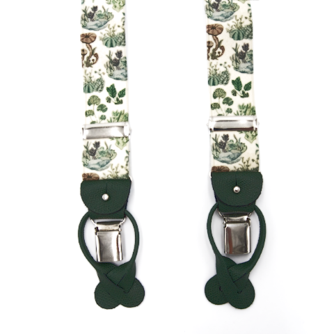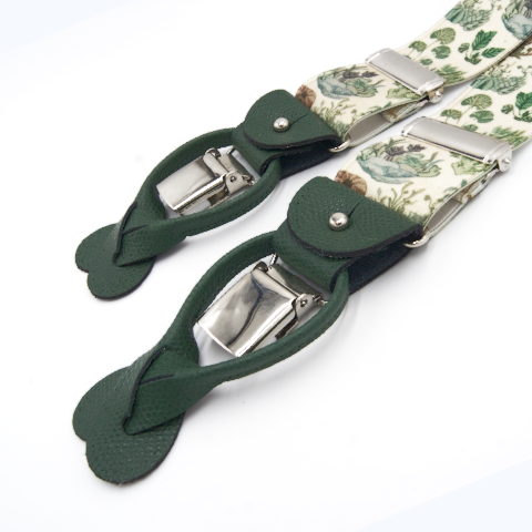 Unsere Hosenträger werden in Leicester, Vereinigtes Königreich handgefertigt. 40 mm breit, sie haben die typischen Y-Form am Rücken, handgenähte Schlaufen und Mittelstück am Rücken aus Leder und Clips aus Nickel welche sich leicht entfernen lassen.