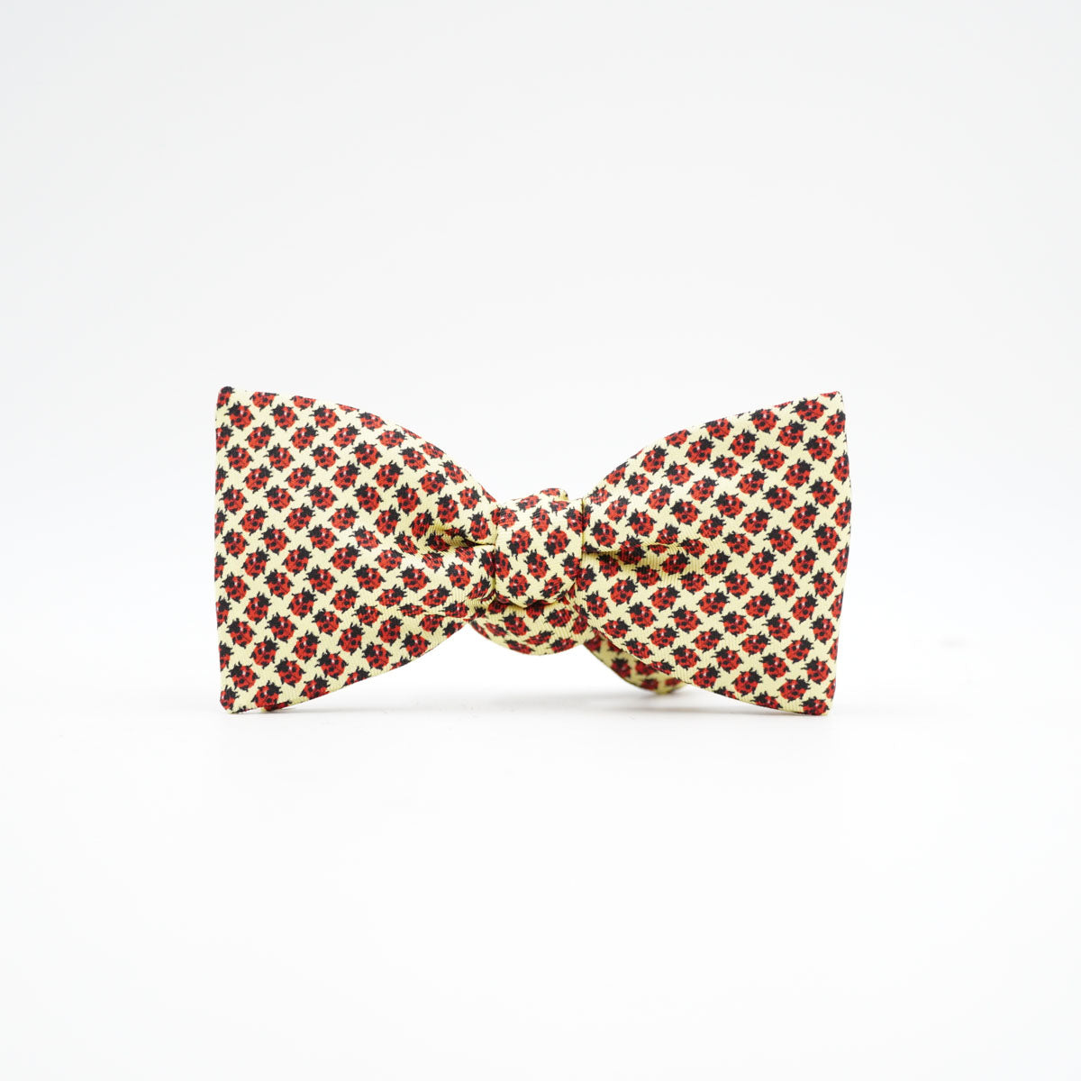 Ein zarter Cremeton, durchsetzt mit kleinen floralen Akzenten in Rot – nostalgisch, charmant und getragen von subtiler Eleganz. Eine Fliege, die an Nachmittage in alten Gärten erinnert und jedem Outfit Wärme verleiht.